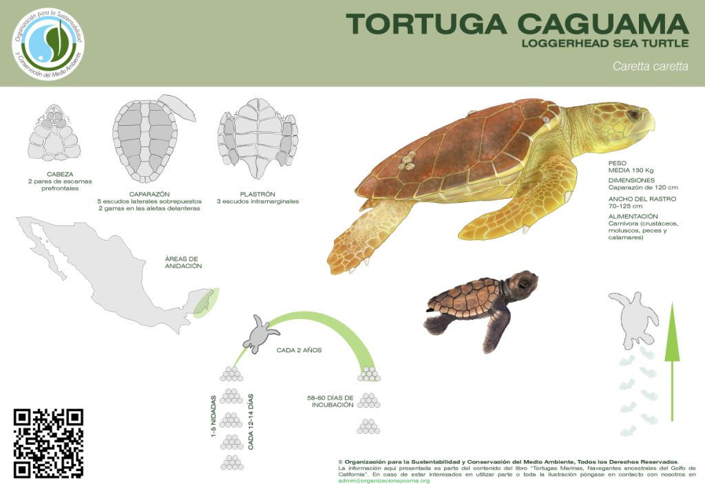 La tortuga caguama está clasificada como especie vulnerable por la IUCN, está incluida en el Apéndice I de CITES y la norma mexicana NOM-059-SEMARNAT-2010 la considera especie en peligro de extinción con sus consecuentes medidas de protección. Según los últimos estudios continúan en descenso poblacional, siendo su mayor amenaza la pesca incidental.