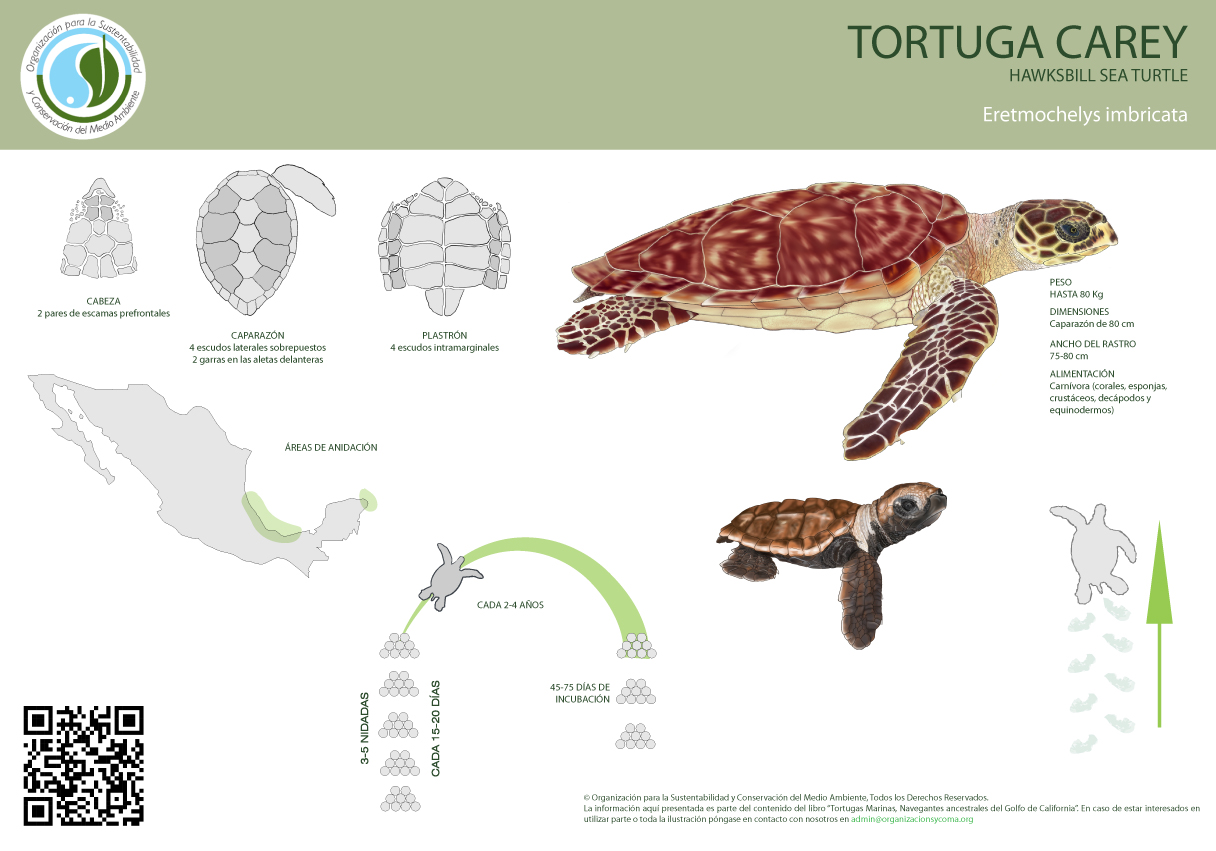 La tortuga carey se encuentra categorizada en la Lista Roja de la UICN como en peligro crítico, está incluida en el Apéndice I de CITES y se incluye como especie en peligro de extinción en la norma mexicana NOM-059-SEMARNAT-2010.